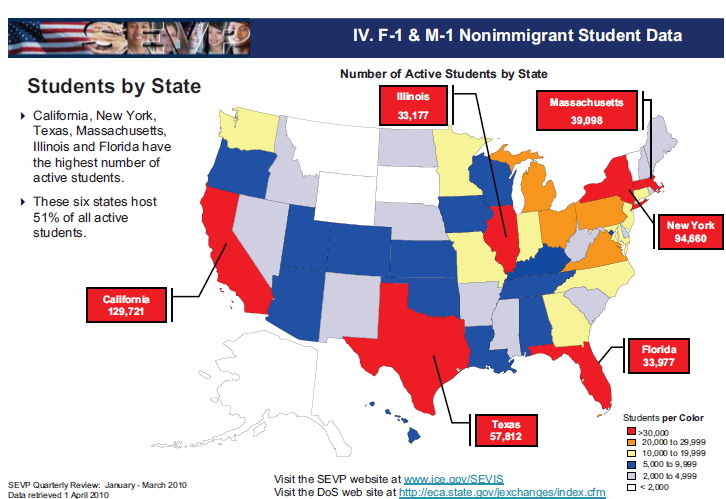 California, New York, Texas, Massachusetts, Florida and Illinois have the highest number of active students. Together these six states host half of all international students in the U.S. The top three host states for Vietnamese higher ed students are California, Texas and Washington. There is considerable untapped potential in many of the 47 other states.