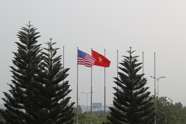 US flag flown in honor of the SDSU delegation's visit to VNU-HCMC.