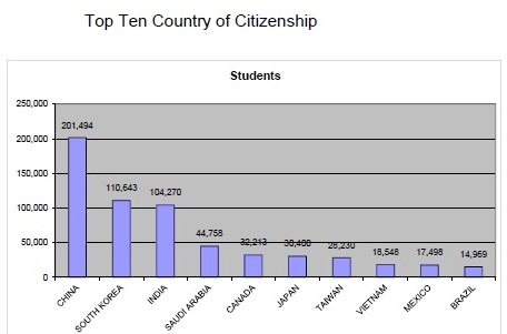 - Vietnam continues to lead the third tier of “top ten” schools (8th) with more students in the US than Mexico (9th) or Brazil (10th).