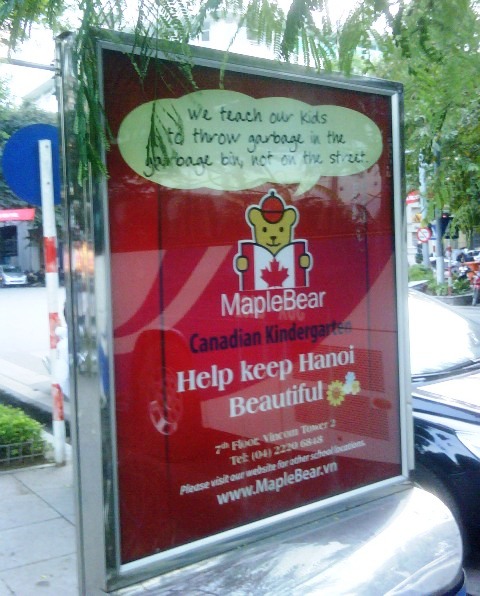 Is MapleBear Canadian Kindergarten onto something? Are parents drawn in by this subtle indictment of their parenting skills or a lack thereof? Schools as agents of socialization? If children learn to throw garbage in the garbage bin at school yet see their parents and other family members throwing it out the car window, are they really going to change?