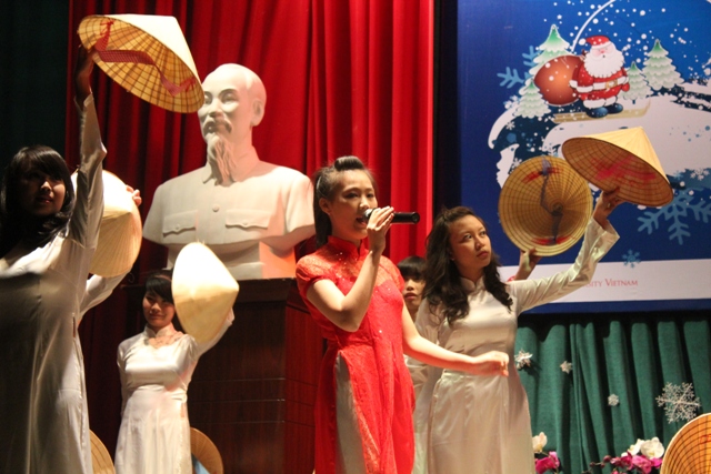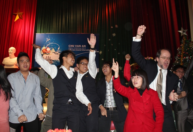 I had the pleasure of spending part of Christmas Eve at Chu Van An High School to celebrate the founding of the International Club. In addition to delivering some remarks (my company, Capstone Vietnam, is a major sponsor of the club in 2012), presenting flowers and a sponsorship certificate, and participating in a lucky draw, my colleagues and I sat back and enjoyed the many talented performers “doing their thing” on stage and in the aisles. One of the more memorable acts was a breakdancing Santa, who rocked the house.