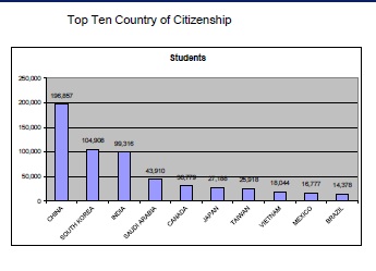 This quarterly report (PDF) is a statistical breakdown of the system’s performance and trends in foreign student representation in U.S. academic and exchange programs. On 31 December 2011, SEVIS (Student and Exchange Visitor Information System) contained records for 1,158,059 active nonimmigrant students, exchange visitors, and their dependents. The total number of records for all F-1, M-1, and J-1 visa holders has increased to approximately 9.2 million. There are 39,109 international students enrolled in secondary school, including a growing number from Vietnam.