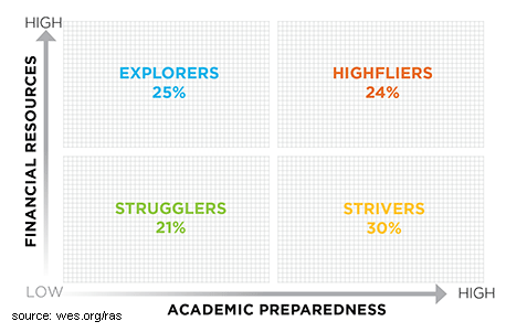 Highfliers are the most sought after as they are academically prepared and financially able. However, their attraction to a narrow circle of top-ranked institutions makes it difficult for lower ranked institutions to compete for them. Strugglers are less selective about their college choice, but they require additional pre- and post-enrollment assistance and have less access to financial resources.