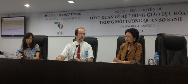 Here is an article in Vietnamese that was posted on the TDT University website:  Viện liên kết và trao đổi quốc tế Trí Việt tổ chức buổi Tọa đàm chuyên đề “Tổng quan về Hệ thống giáo dục đại học Hoa Kỳ” (Tri Viet Institute for International Studies and Exchange Holds a Seminar on “An Overview of the Higher Education System of the United States”).