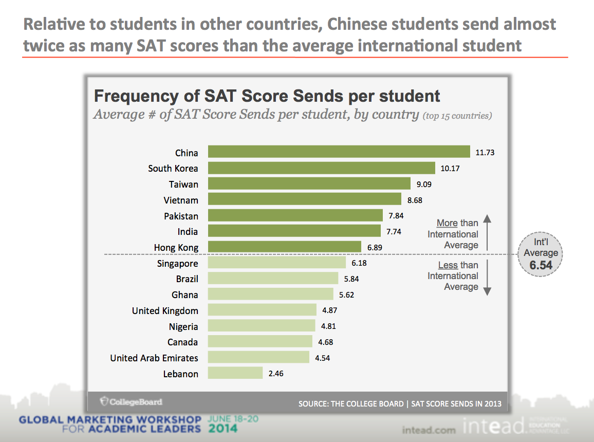 Chinese students submit their SAT scores to twice as many colleges than international students from other countries. What does that mean for your yield enrollment marketing and your yield projections?