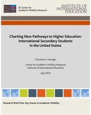 NEW YORK, July 8, 2014—A new report published today by the Institute of International Education, “Charting new pathways to higher education: International secondary students in the United States,” provides comprehensive analysis on the more than 73,000 inbound international students who come to the United States for high school, and what the trends mean for higher education enrollments and recruitment.
