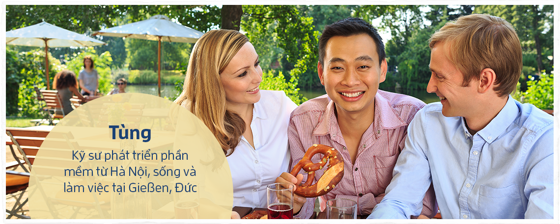 The Vietnamese version, which is being actively promoted on various social media channels in Vietnam, features Tung, a business software development engineer from Hanoi, who lives and works in Giessen, Germany. (I like the pretzel and the beer – nice touch. Makes me hungry & thirsty. :-))