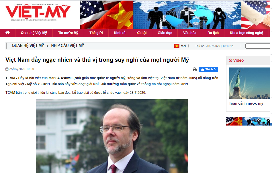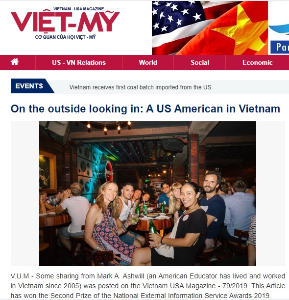 A 2019 article of mine entitled On the outside looking in: A US American in Vietnam (Người Mỹ tại Việt Nam) won a 2nd prize in the 2019 National External Information Service Awards competition, the results of which were announced earlier this week.