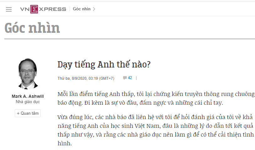 My latest essay for VNExpress International about the subpar results of the August national high school graduation exam for English. Think of it as a reality check on what is generally a favorable situation in comparative perspective. One of my key suggestions is that foreign language study be made optional at the K-12 level.
