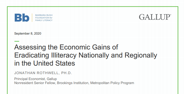 For detailed information, have a look at this report Assessing the Economic Gains of Eradicating Illiteracy Nationally and Regionally in the United States (PDF download) by Jonathan Rothwell, Principal Economist, Gallup, and Nonresident Senior Fellow, Brookings Institution, Metropolitan Policy Program.