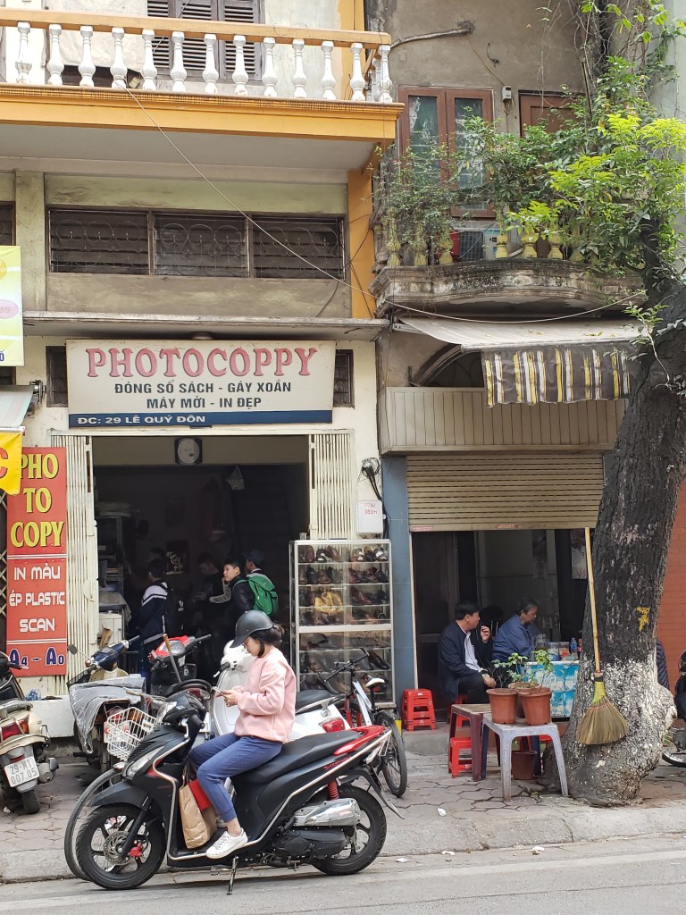 This one, located down the street from Capstone’s Hanoi office, is a combined photo copy service, misspelled sign and all, and a shoe repair shop. (I recently had the soles of two pairs of shoes replaced for the princely sum of 50,000 VND or $2.16. Quality work!) It has been in business since before 1990.