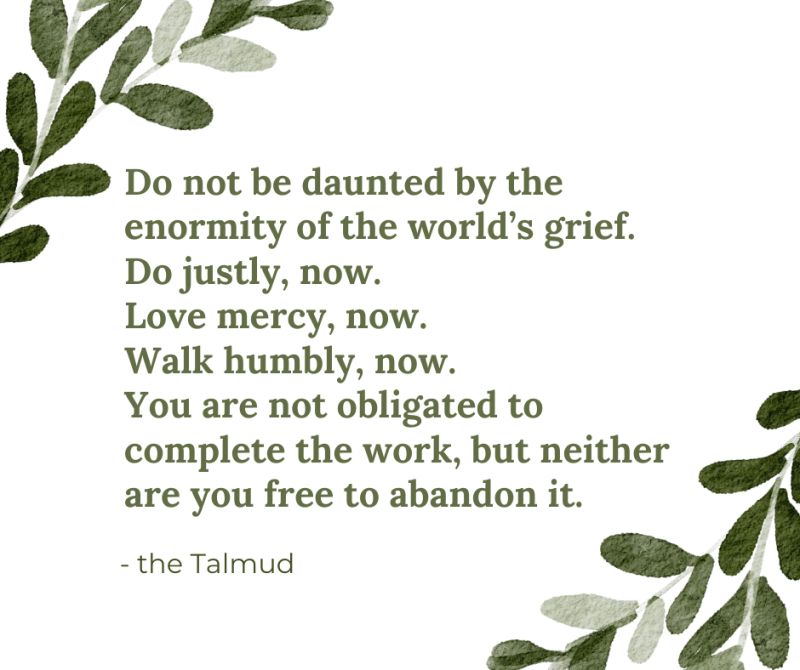 Lo Alecha haM’lacha Ligmor, veLo Atah Ben-Chorin leHivatel Memenah / לֹא עָלֶיךָ הַמְּלָאכָה לִגְמוֹר, וְלֹא אַתָּה בֶן חוֹרִין לִבָּטֵל מִמֶּנָּה / It is not your duty to complete the task, but nor it is your freedom to withdraw from it.