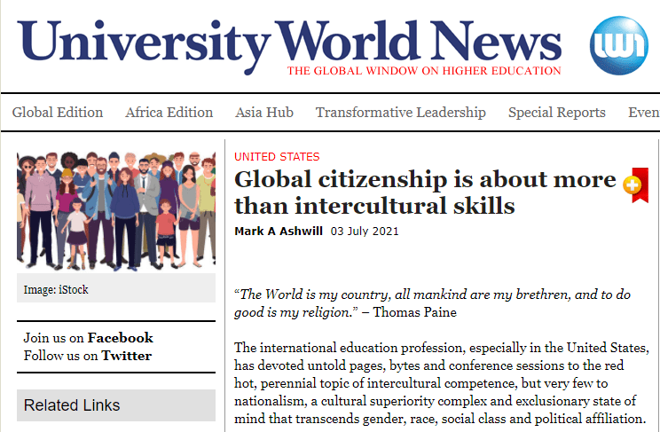 Those of us who have devoted ourselves personally and professionally to international education have an obligation to address nationalism head on in our discussions, writing, presentations, and advocacy. To focus on intercultural competence as a skill set and neglect global citizenship as a mindset is to abdicate this collective responsibility to the detriment of us all.