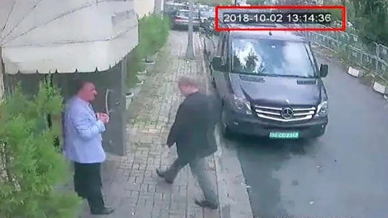 This image taken from CCTV video shows Saudi journalist Jamal Khashoggi entering the Saudi Consulate in Istanbul on 2 October 2018. (Hurriyet via AP) MAA: Khashoggi’s last few minutes of life. His fiancée, Hatice Cengiz, was waiting for him.