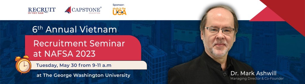 Capstone Education/Recruit in Viet Nam is pleased to announce that Dr. Mark Ashwill, managing director and co-founder, will speak at an unofficial, pre-conference Vietnam student recruitment seminar from 9-11 a.m. on Tuesday, May 30, 2023 at The George Washington University in Washington, D.C.