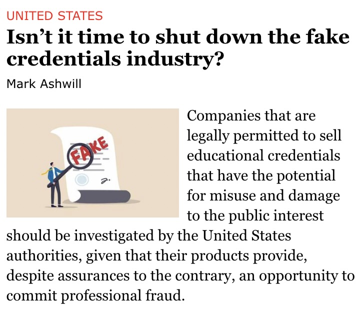 6 thoughts on “Isn’t it time to shut down the fake credentials industry?