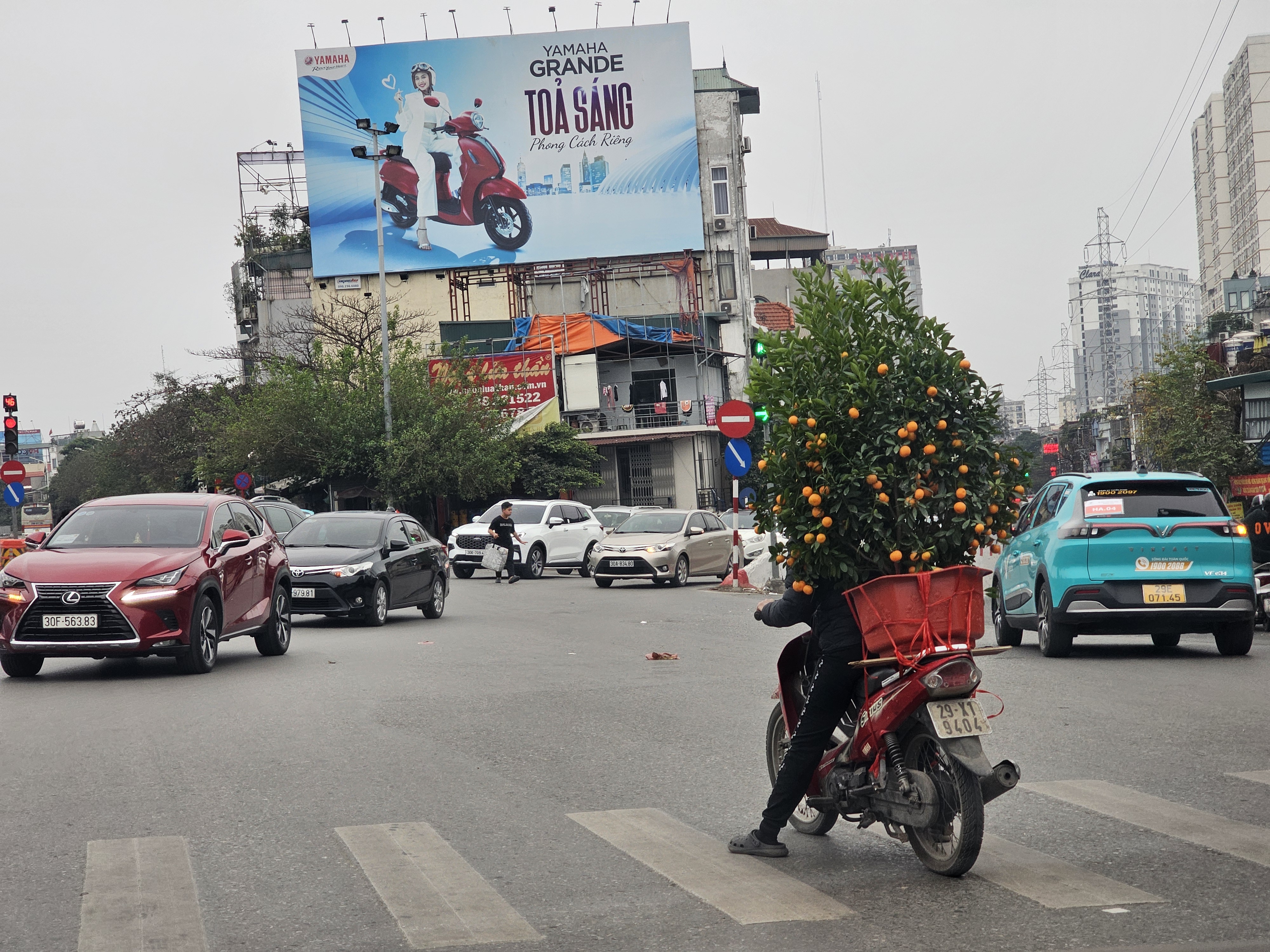 It’s beginning to look a lot like Tết, everywhere you go. Take a look at the kumquat trees flying in the breeze, peach and other flowers sold on the road.