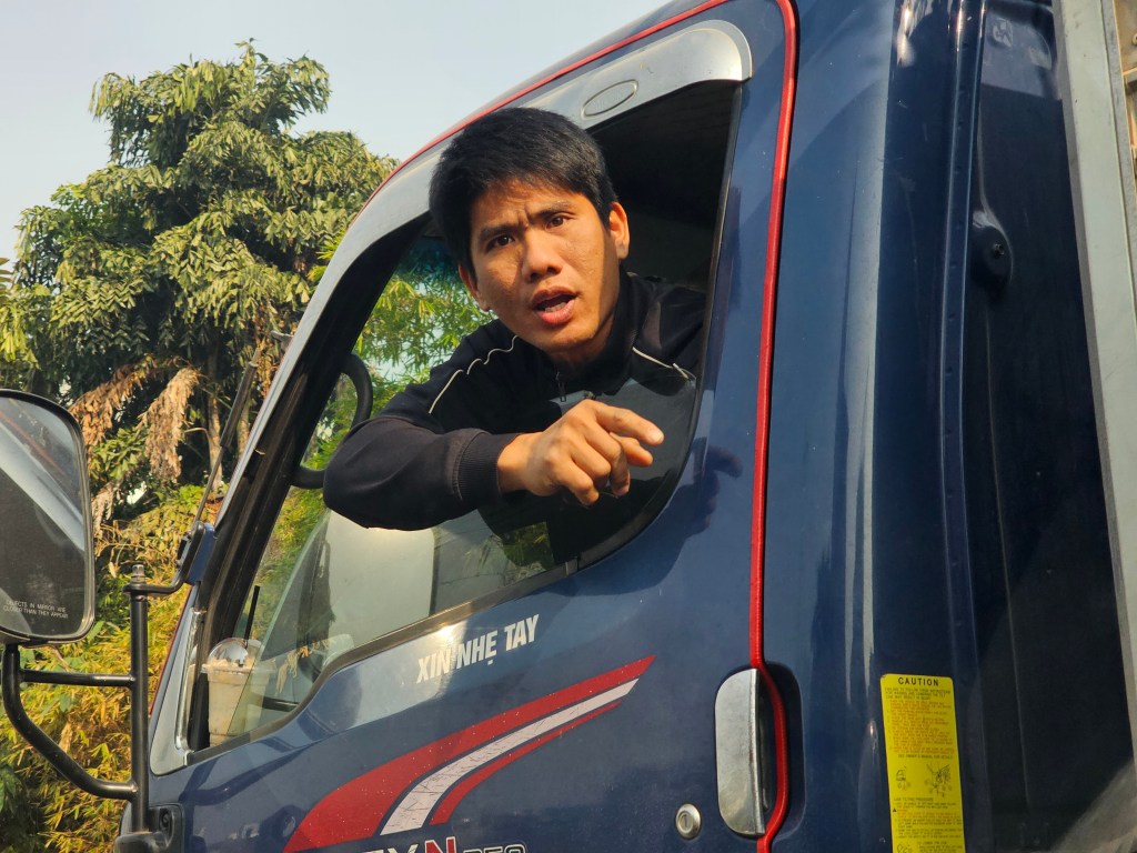 Here’s a bad boy truck driver who played games with me, tried to force me out of my lane, and came so close that he damaged one of my side mirrors. No need to get out of the car and risk injury or worse playing out my fantasy, which was to kick his ass. (I’m keeping this post PG.) Based on my experience of living in Vietnam for nearly 20 years and many trips back and forth starting in 1996, I know that conflict between Vietnamese and foreign men can escalate quickly, and while Vietnamese aren’t permitted to purchase and carry guns, thank god, people like this guy usually have other weapons handy, e.g., a knife.