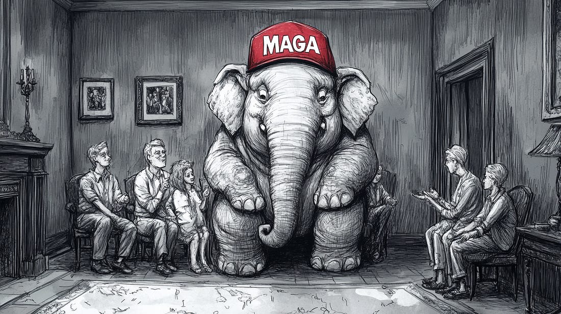 Maybe it’s your brother. Your aunt. Your childhood friend who always brought the best pasta salad to Fourth of July potlucks. The conversations now come with a slow, careful dance, how’s the weather, how are the kids, how’s the job, before both sides quietly avoid the giant, MAGA-shaped elephant in the room.