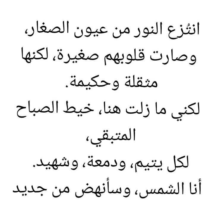 The poem talks about the pain we live through in Gaza, loss, destruction, and children becoming orphans. But I also wanted to leave a message of hope. Even when everything is dark, there’s still a light inside us that refuses to fade.