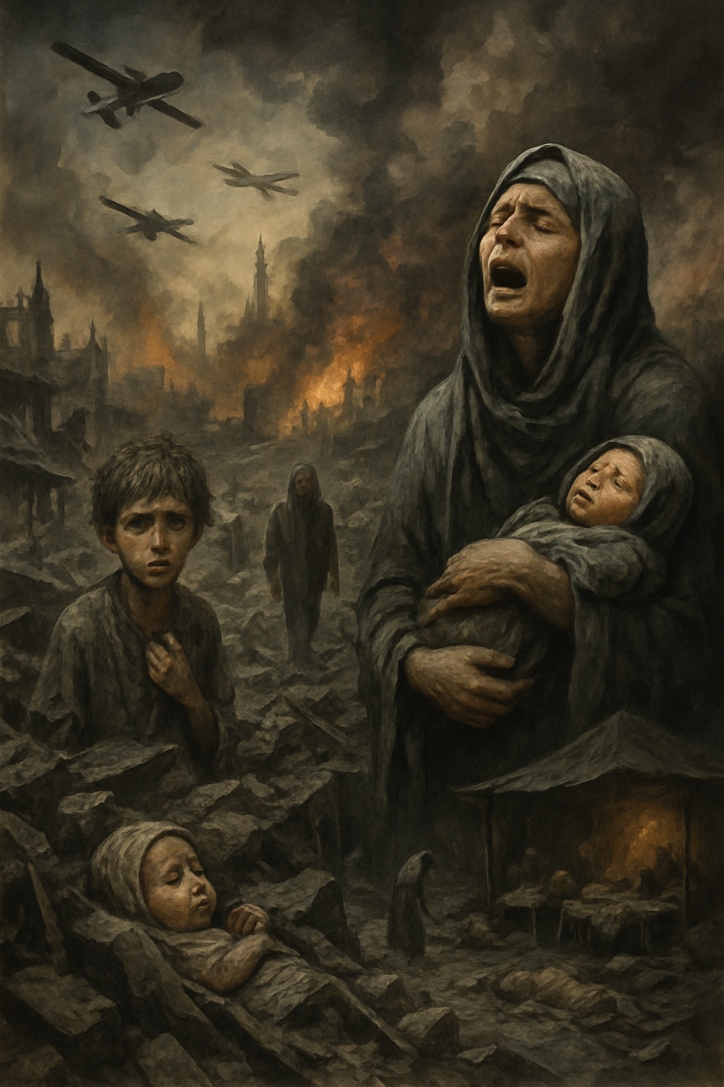 In Gaza, the cries of the hungry go unheard because the sound of drones and warplanes is louder. The pain of mothers is hidden behind clouds of smoke. People walk among the ruins with hollow eyes, not looking for hope, just searching for a missing loved one, a piece of bread, or a corner to survive.