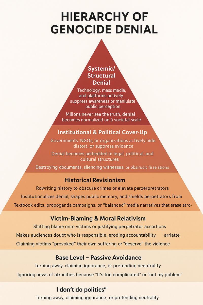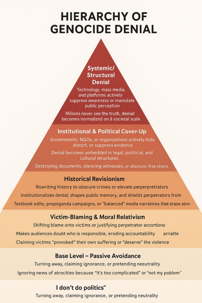Dr. Raj Thamotheram shared this Hierarchy of Genocide Denial on LinkedIn: