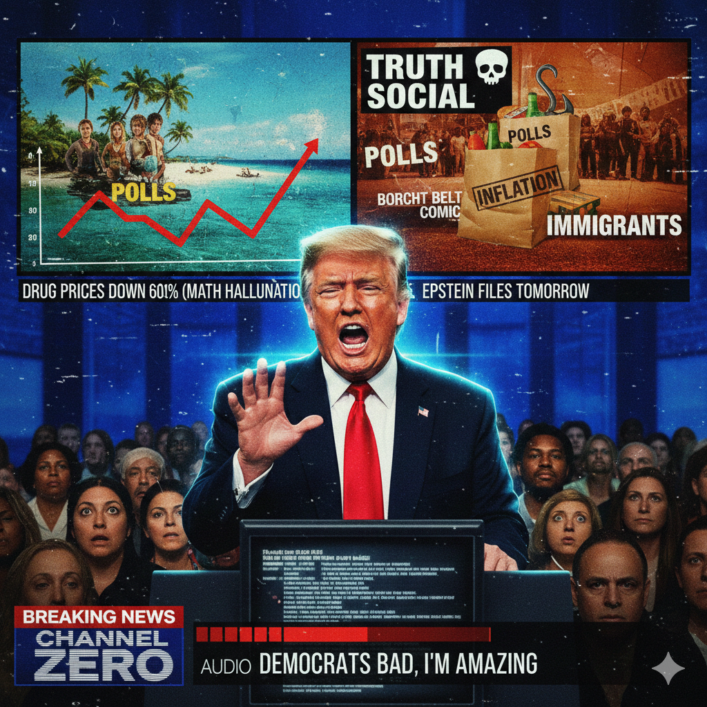 He claimed drug prices are down “600 percent.” That’s not a policy, it’s a math hallucination. By that logic, pharmaceutical companies would be paying patients to take medication. This is the level of intellectual seriousness we’re dealing with.
