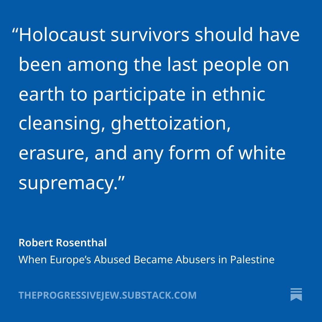 This is a repost of a Substack essay (The Progressive Jew) by Robert Rosenthal, who describes himself as “a former Zionist, a Jewish progressive, and a family member of Holocaust victims.”