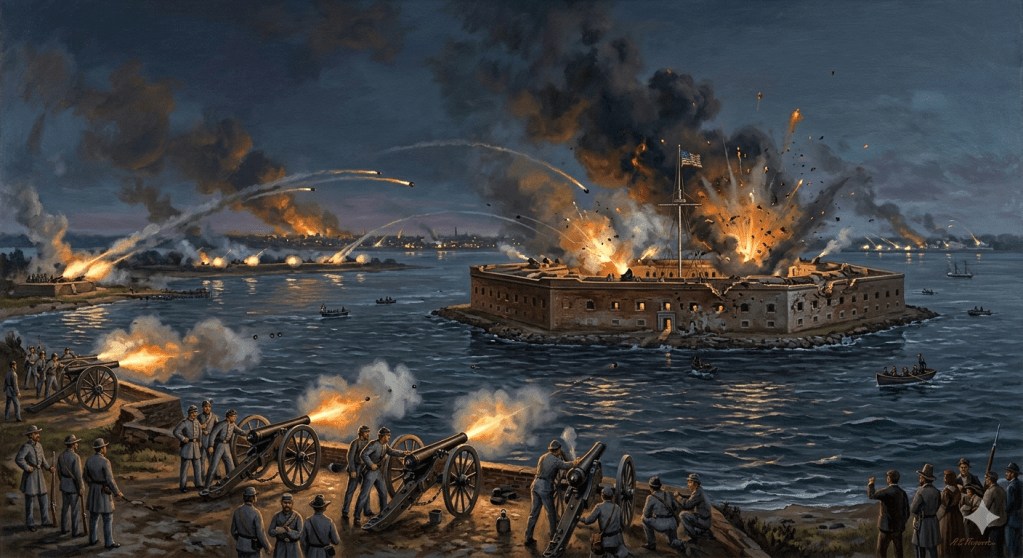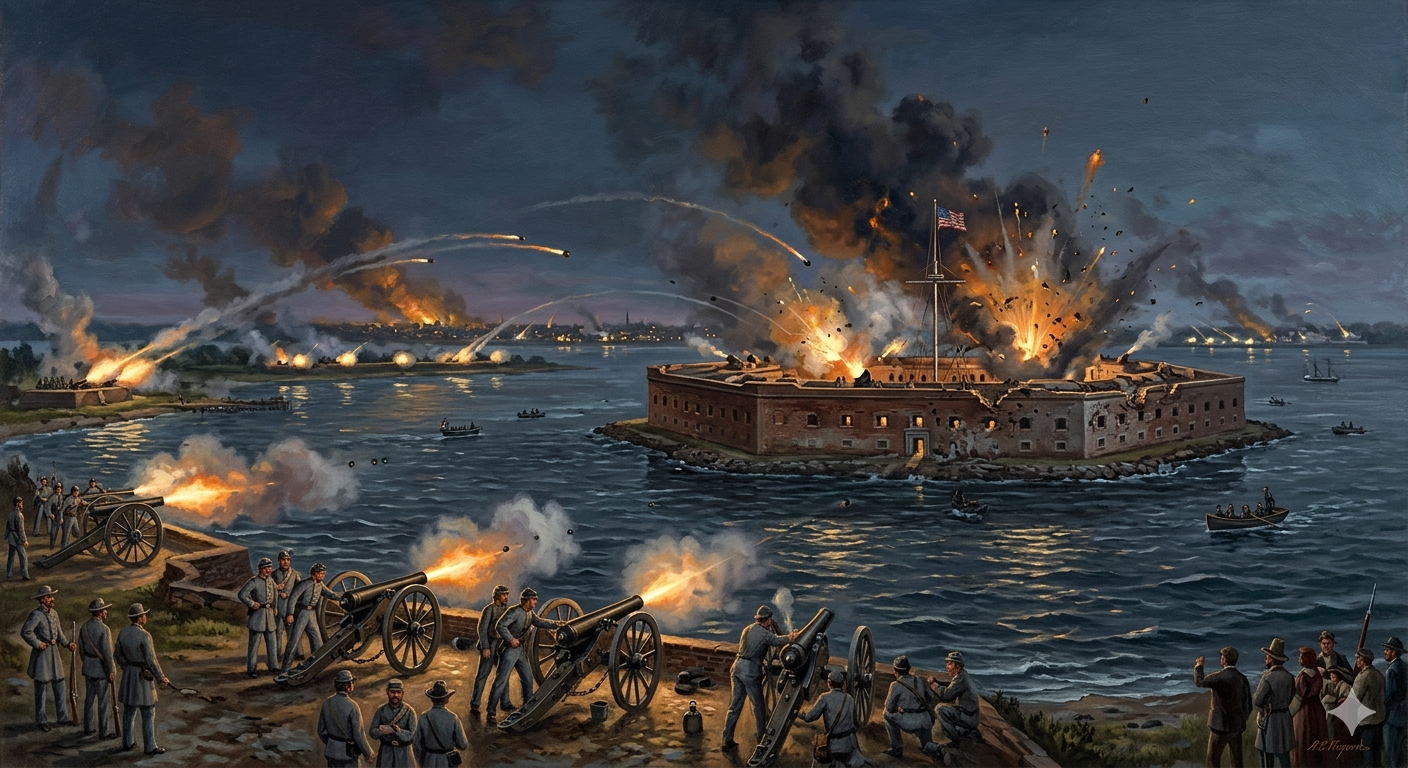 At 4:30 a.m. on April 12, 1861, Confederate forces fired on Fort Sumter, a federal fort built on an artificial island in Charleston Harbor.